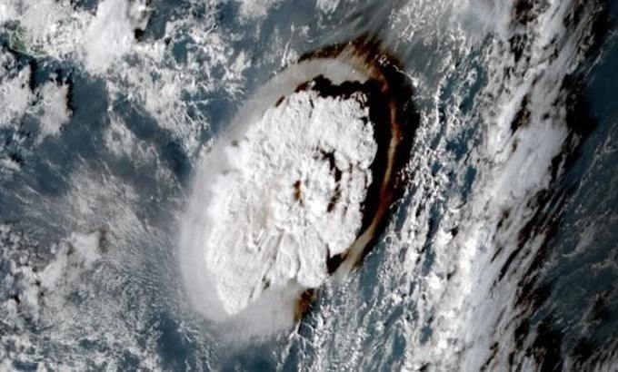 Hình ảnh vệ tinh về vụ phun trào Hunga Tonga – Hunga Ha'apai nổi tiếng đầu năm 2022 - (Ảnh: JAXA/JMA).
