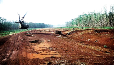 Thằng Meadows đưa ngón tay cái lên làm dấu là đă báo cáo cho FAC xong. Tôi cho nó biết ḿnh phải phá cây làm băi đáp cho trực thăng xuống. Nó không suy nghĩ nói OK ngay. Tôi quan sát thấy hướng Đông Nam có đám rừng thưa, toàn là cây chồi, không to lắm. Tôi cho lịnh toán tiến về hướng đó. Đi được khoảng 200 thước th́ thấy dưới triền đồi hơi thoai thoải, rừng thưa, cây to chỉ bằng bắp vế. Đảo mắt nhanh một ṿng, ước lượng chu vi rộng đủ cho một trực thăng đáp xuống được mà cánh quạt phải không chém vào cây, tôi quyết định chọn nơi này làm băi đáp. V́ là triền đồi nên nước chẩy xuống tạo thành một khe khá sâu như một con suối cạn. Tôi bảo đẩy 2 thằng tù binh xuống dưới đó. Định tọa độ xong, đưa cho thằng Charles gửi lên cho FAC. Một mặt, tôi cho lấy giây chuyền nổ quấn chung quanh các thân cây, định bụng sẽ cho nổ mấy cây này trước vài phút để lấy chỗ cho trực thăng đáp xuống. Nuôi quân 3 năm, xài trong 15 phút. Với tay nghề của thằng James và 2 toán viên của tôi, việc dọn băi trực thăng bằng chất nổ là 1 trong 15 bài dễ nhất của khóa “”Ḿn bẫy & Phá hoại”. FAC cho biết trực thăng đă cất cánh. Nh́n đồng hồ, tôi tính phải 40 phút nữa trực thăng mới tới.