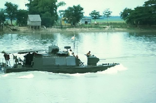 Ở bờ suối bên này chỉ có tôi, Meadows và thằng Dưỡng. Thằng Meadows gần như nằm hẳn xuống suối, từ thắt lưng trở xuống ngâm hẳn dưới nước suối. Nó để máy quay phim ghếch ống kính lên chờ quay. Tôi đứng rùn người, hơi nghiêng bên cạnh thân cây gỗ mục chờ chụp h́nh. Khoảng 15 phút sau, ở khúc quanh hướng Tây xuất hiện một toán khoảng chừng 15 tên, vượt qua chỗ chúng tôi đang núp với những bước chân sải thật dài. Cũng quân phục xanh, nón cối, giầy vải và dép râu lẫn lộn, lưng mang balô có vắt nhánh cây. Tên nào cũng chống một cây gậy nhưng không thấy mang vũ khí hay khiêng vác vật ǵ cả, khác với toán vừa vượt qua. Toán này tất cả đều sồn sồn khoảng 40-50 tuổi.