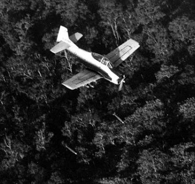 Tôi liếc một ṿng thấy mấy thằng nhỏ đang ẩn nấp thật kỹ sau những thân cây to. Tôi, thằng Meadows và Charles bắt đầu hướng dẫn cho FAC đánh chính xác hơn. Giờ phút này, ở con đường ṃn phía bên kia bờ suối lại thấy xuất hiện một toán quân khác. Đoàn này trang phục cũng quần áo trận xanh, lưng đeo ba-lô vắt lá ngụy trang. Đặc biệt tất cả đều mang vũ khí cá nhân, phần nhiều là AK-47, không thấy có súng lớn như đoàn đầu tiên. Chúng gần như dồn cục vào nhau, vừa đi vừa chạy. Nhờ tấm pa-nô trải làm dấu phía sau chúng tôi nên FAC thấy vị trí toán rất rơ. Do đó, lần này khu trục đánh bom con đường ṃn trước mặt chúng tôi không qúa 50 thước. Nghe tiếng khu trục gầm thét, bọn chúng ngừng lại và đứng tạt ra hai bên đường. Một tràng đại liên từ khu trục bắn cày dài theo mặt đường tới bờ suối bên kia. Bị khu trục bắn thẳng vào đoàn quân nên chúng chạy náo loạn và kêu la ầm ĩ. V́ rừng già nên bên dưới rất trống trải nên thấy có rất nhiều xác chết nằm rải rác trên đường. Một số tạt về phía bờ suối hướng toán chúng tôi đang đứng phục kích. Lần này, khu trục bắn nhiều tràng đại liên dọc theo bờ suối. Lại nhiều tên nằm bên bờ suối bị ngă gục.