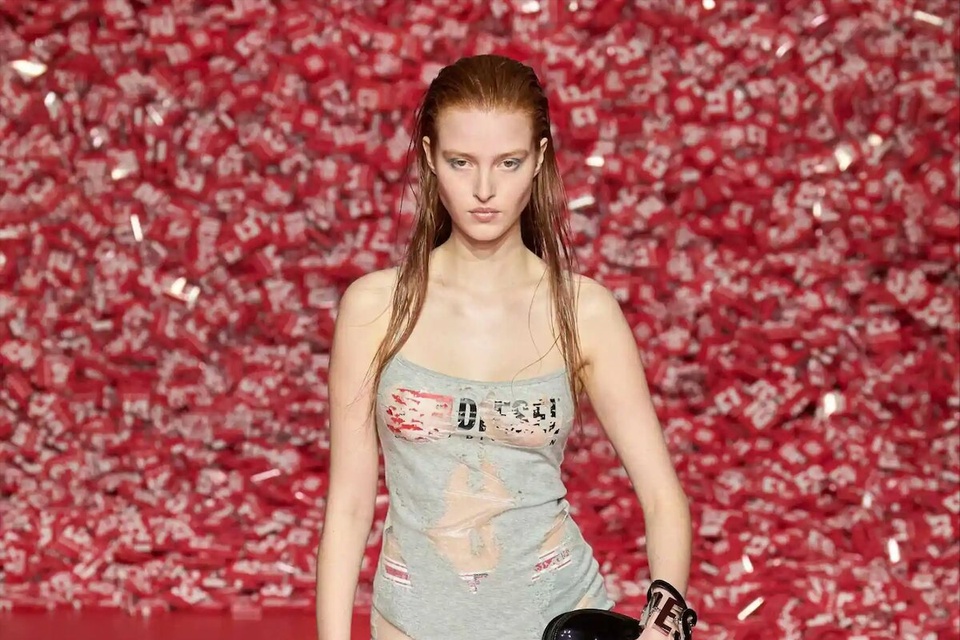 Thương hiệu Diesel gây xôn xao Tuần lễ thời trang Milan 2023 khi trang trí sàn diễn bằng 200.000 hộp bao cao su đỏ, in logo nhãn hàng Durex. Sân khấu đặc biệt này là sản phẩm của Giám đốc sáng tạo Glenn Martens.