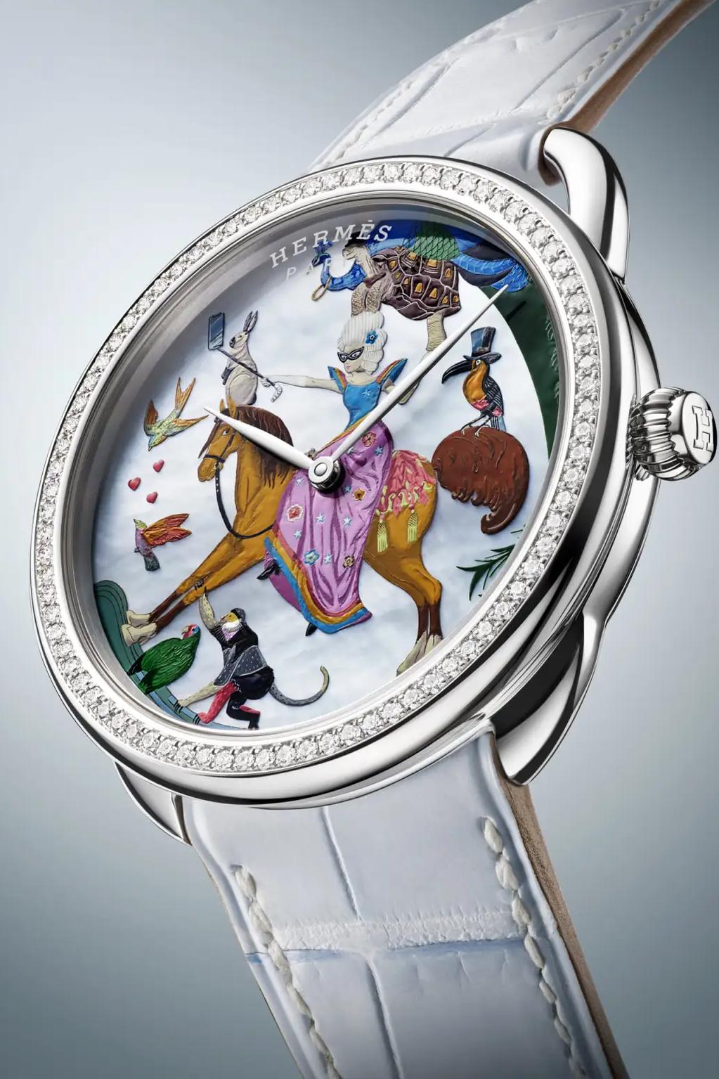 Chiếc đồng hồ với mặt số khắc họa công chúa đang selfie của Hermès. Ảnh: Hermès.