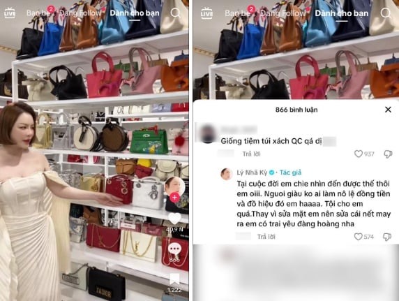 Mới đây, dân tình bất ngờ "đào" lại videp về "Lý Nhã Kỳ 'flex nhẹ' tủ đồ hàng hiệu". Dân mạng để lại bình luận có phần mỉa mai về cách Lý Nhã Kỳ trưng bày đồ hiệu. Một netizen để lại bình luận rằng: "Giống tiệm túi xách Quảng Châu quá vậy". Thay vì im lặng cho qua chuyện, Lý Nhã Kỳ đáp trả: "Tại cuộc đời em chỉ nhìn đến được thế thôi em ơi. Người giàu không ai làm nô lệ đồng tiền và đồ hiệu đó em ha. Tội cho em quá. Thay vì sửa mặt em nên sửa cái nết may ra em có trai yêu đàng hoàng nha".