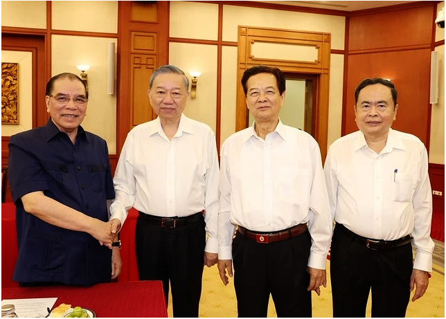 Báo Tuổi trẻ loan tin, sáng 15 tháng 8 năm 2024, Bộ Chính trị Cộng sản đã tổ chức gặp mặt các cựu lãnh đạo đảng, Nhà nước, Mặt trận Tổ quốc Việt Nam tại trụ sở Trung ương đảng, nhân dịp kỷ niệm 79 năm ngày Cách mạng tháng Tám và Quốc khánh 2 tháng 9. Buổi gặp mặt đã gây chú ý dư luận bởi dàn cựu lãnh đạo được mời, và không được mời tham gia. Rất nhiều các cựu lãnh đạo Cộng sản mới bị “hạ cánh” gần đây đều không thấy bóng dáng như, ông Nguyễn Xuân Phúc, ông Võ Văn Thưởng, đồng cựu Chủ tịch nước; ông Vương Đình Huệ, cựu Chủ tịch Quốc hội; và hàng loạt cựu quan chức cấp cao khác đều vắng mặt. Họ được dư luận Facebook bình luận rằng, đó là “đối thủ” của ông Tô Lâm, tân Tổng Bí thư kiêm Chủ tịch nước. Danh sách khách được mời cấp tứ trụ chỉ có 6 người gồm, Nông Đức Mạnh, cựu Tổng Bí Thư, Nguyễn Minh Triết, cựu Chủ tịch nước; đặc biệt là ông Nguyễn Tấn Dũng, cựu Thủ tướng, một địch thủ của ông Nguyễn Phú Trọng, đã vắng bóng rất lâu ở các sự kiện của nhà cầm quyền; 3 người còn lại đều là các cựu Chủ tịch Quốc hội gồm, Nguyễn Văn An, Nguyễn Sinh Hùng, và Nguyễn Thị Kim Ngân. Nhìn vào danh sách khách mời, và khách không được mời trên, một bộ phận dư luận bình luận rằng, chứng tỏ ông Tô Lâm là người thù dai. Nhiều nguồn tin trong cuộc cũng cho biết thêm đại tướng cộng sản Lương Cường sẽ lên thay Tô Lâm nắm chức chủ tịch nước.
