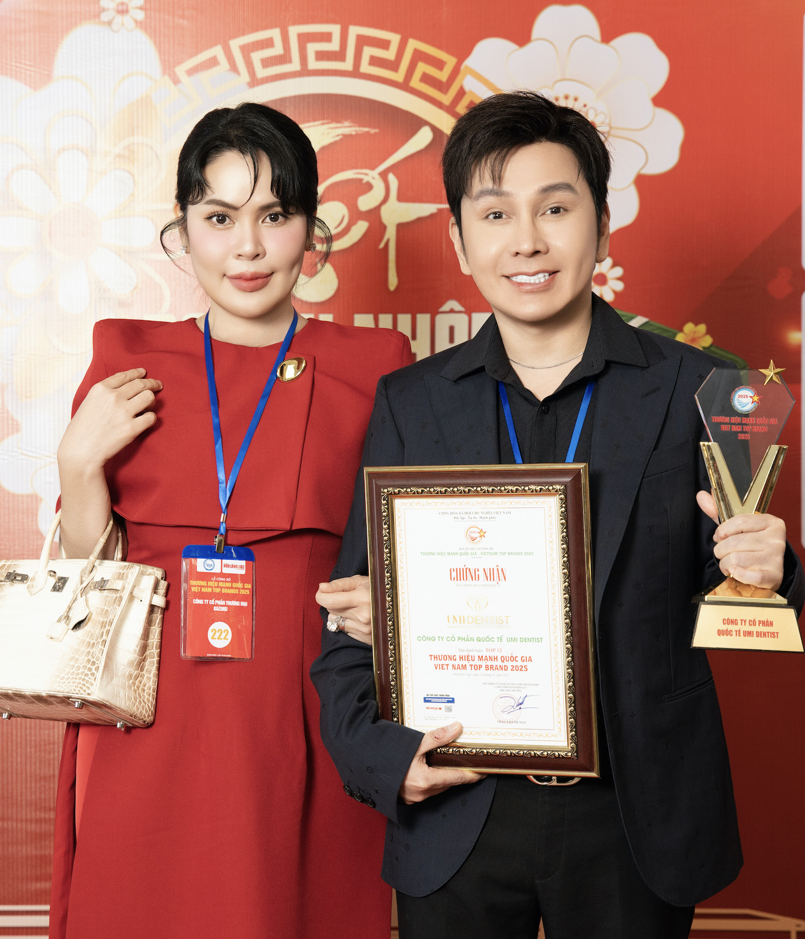 Phương Lê và Vũ Luân nhận giải thưởng Thương hiệu mạnh quốc gia 2025.