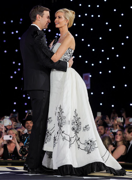 Con gái lớn nhất của ông Donald Trump đã khiêu vũ với chồng mình, Jared Kushner. Hai người đã có khoảnh khắc lãng mạn chìm đắm trong âm nhạc khi những người còn lại trong gia đình Đệ nhất cũng khiêu vũ trên sân khấu.