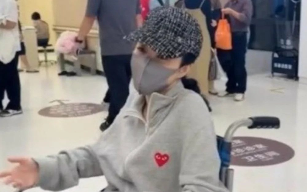 Hình ảnh nữ diễn viên Lâm Hạ Vy ngồi xe lăn khiến nhiều khán giả xót xa.