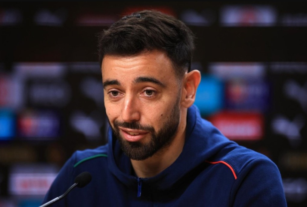 Fernandes trong buổi họp báo trước trận Bồ Đào Nha gặp Armenia ở lượt cuối bảng F vòng loại World Cup 2026 khu vực châu Âu tại sân Dragao, Porto, Bồ Đào Nha ngày 15/11. Ảnh: EFE