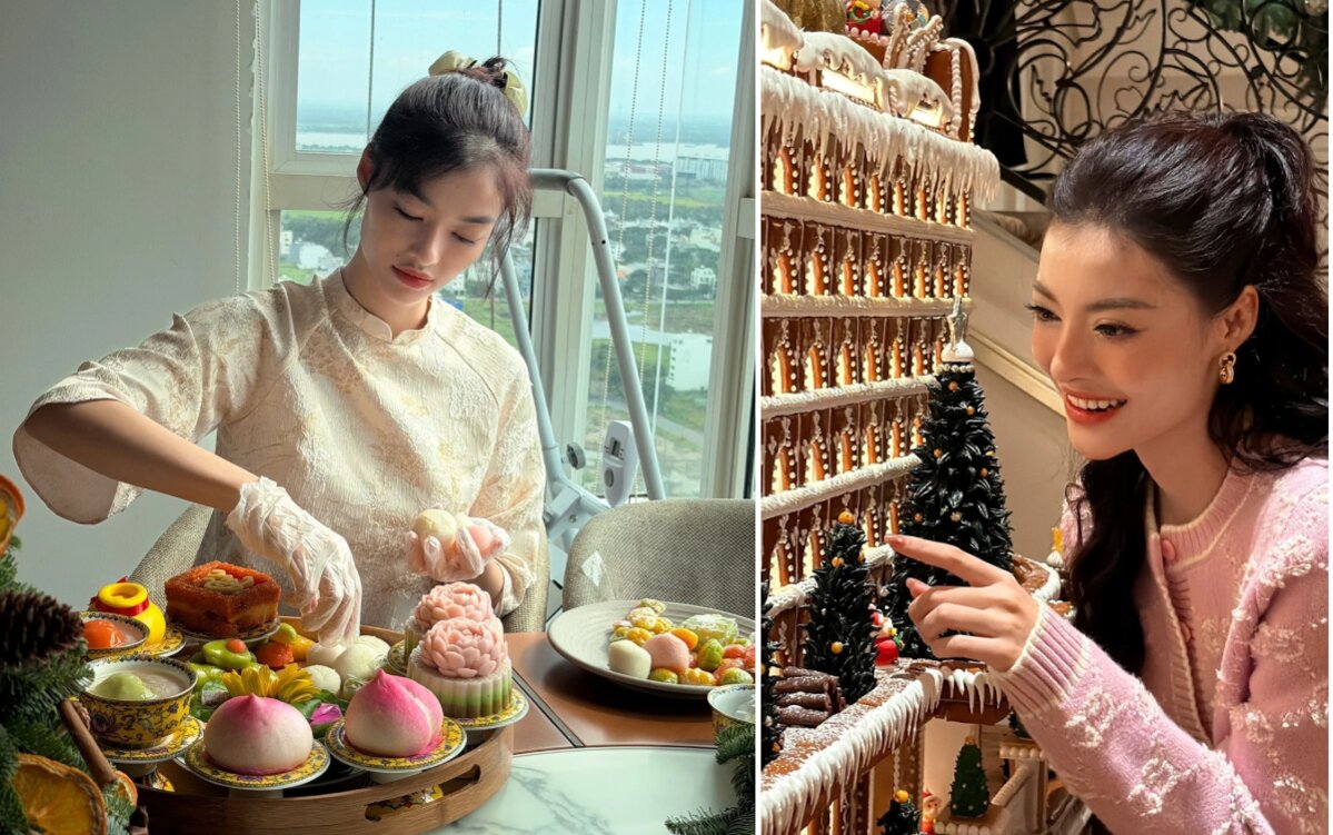 Trên trang cá nhân, Á hậu Kiều Loan chia sẻ hình ảnh tự tay chuẩn bị đồ cho Tết Hạ nguyên (ảnh trái). Theo á hậu, thời gian qua, lịch trình công việc lẫn cuộc sống của cô bận rộn nhưng người đẹp vẫn cố gắng chuẩn bị mâm cơm để cầu bình an, khỏe mạnh.