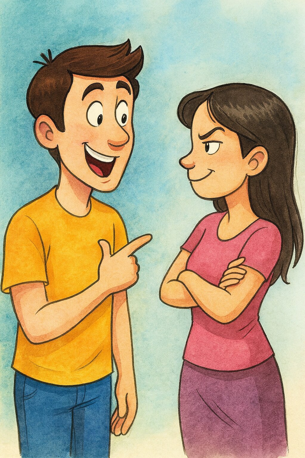 Cô gái im lặng, không phản ứng. Chàng trai bực mình, nói tiếp: – Bày đặt giả bộ, chứ trong bụng đang mừng dữ lắm!