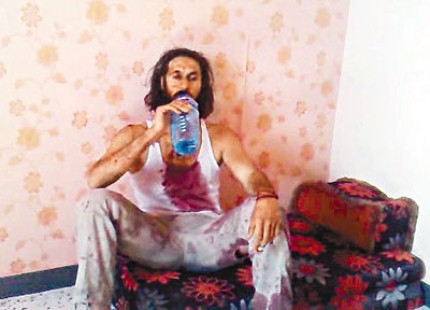 Trong hình, Mutassim mặc một bộ quần áo dính máu nhưng không có vẻ gì là đang bị thương nặng, anh ta rất thản nhiên ngồi uống nước và hút thuốc.