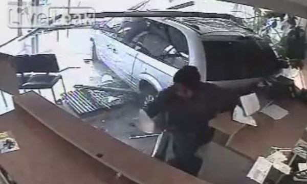 Camera an ninh quay lại hình ảnh một chiếc xe tông phần đuôi phá nát một văn phòng. Thay vì đạp thắng, người tài xế đạp nhầm chân ga ô tô gây hậu quả kinh hoàng.