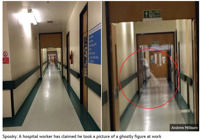 VBF-Đây dường như là 1 bức ảnh hòa toàn có thật khi chàng trai này muốn chứng minh rằng mình có đi làm nên đã chụp bức ảnh kinh dị này. Nhiều người vẫn cho là bức ảnh có sự xử lý kĩ xảo nhưng chàng trai đã bác bỏ thông tin này.Nhân viên tại một bệnh viện ở Anh cho biết đã vô tình chụp được bức ảnh kỳ quái. Bức ảnh hiển thị bóng trắng mờ của một cô gái, được cho là đã chết, lướt nhẹ qua hành lang bệnh viện, theo The Mirror.
