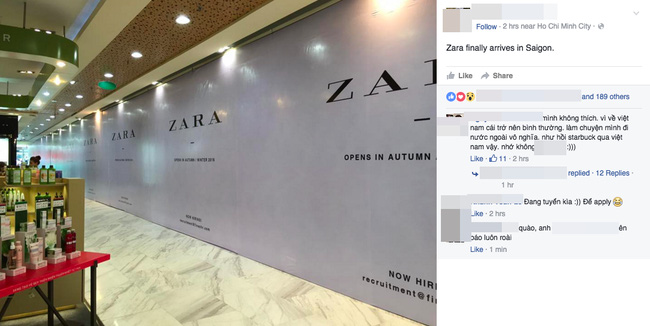 Trước đó, theo thông tin từ một nhân vật khá có tiếng trong cộng đồng các tín đồ thời trang Việt Nam, cửa hàng đầu tiên của Zara sẽ được mở tại TP.Hồ Chí Minh vào khoảng thời gian hè hoặc thu. Ngoài ra, quá trình tuyển dụng nhân viên bán hàng cũng đã được bắt đầu và các ứng viên đủ tiêu chuẩn sẽ được đi đào tạo tại Singapore hoặc Philippines.
